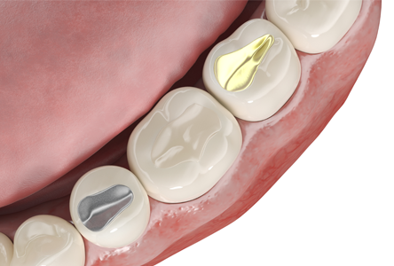 충치 부위를 삭제하고 본을 뜬 후, 인레이라는 수복물을 제작하여